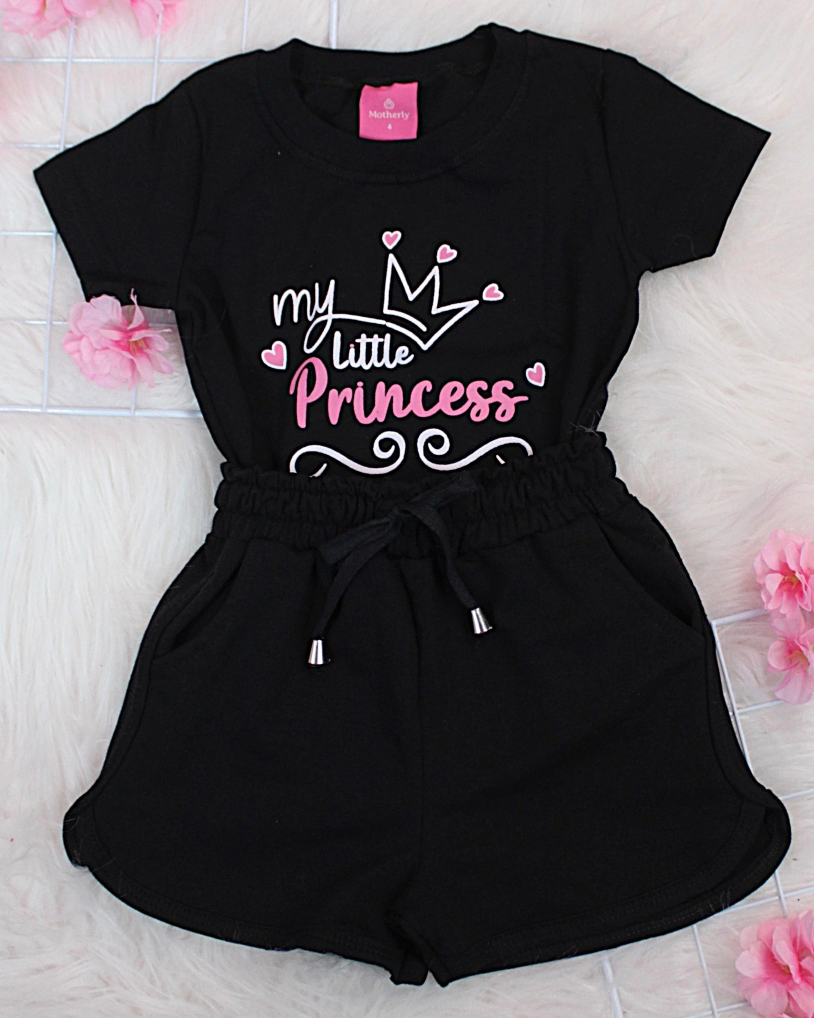 A camiseta preta com estampa “My Little Princess” simboliza amor, carinho e a admiração que temos por nossas pequenas um lembrete diário de que toda menina é uma princesa única, forte e cheia de brilho.