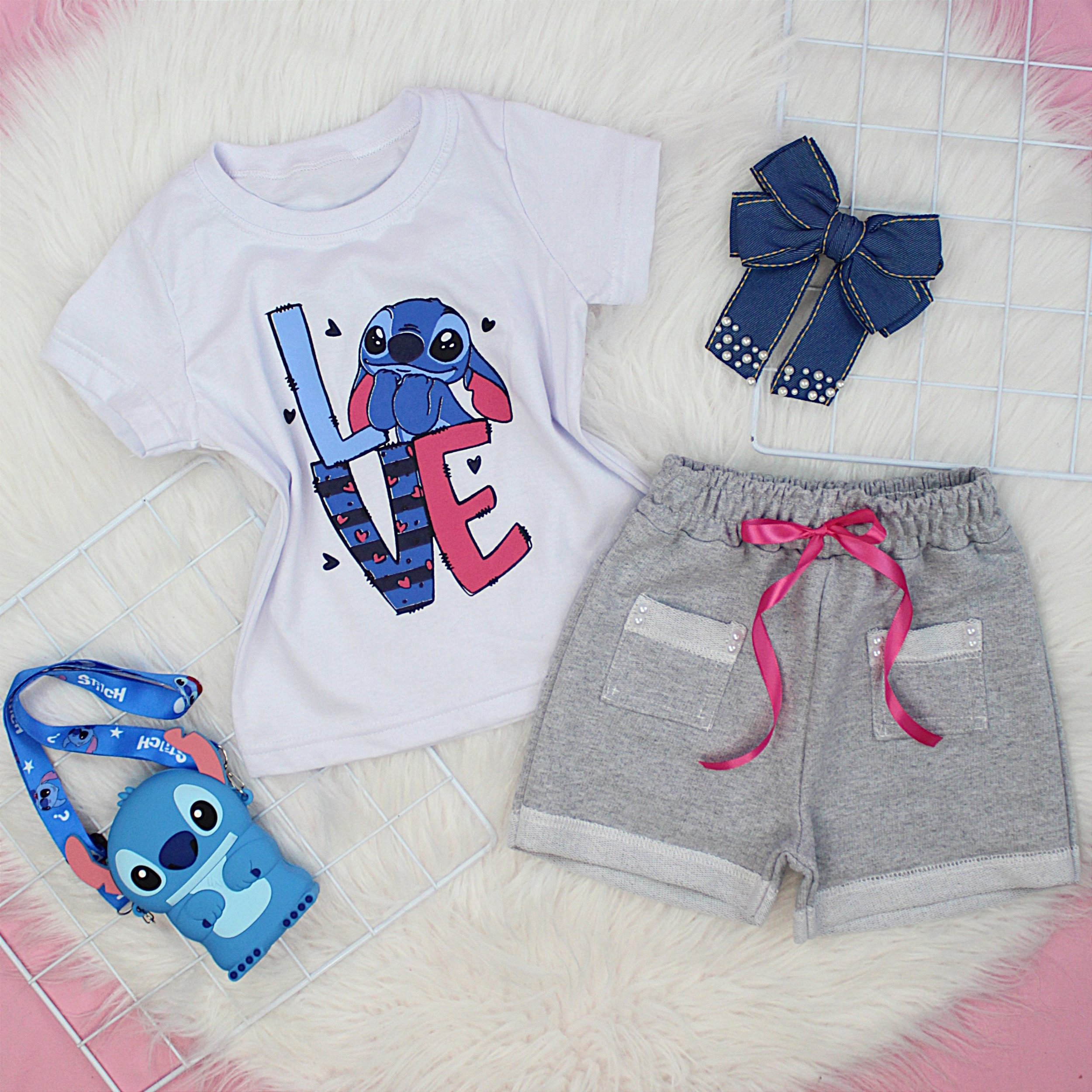 O Conjunto Stitch Love é ideal para passeios, escola e momentos de lazer, trazendo um visual moderno, delicado e cheio de charme.