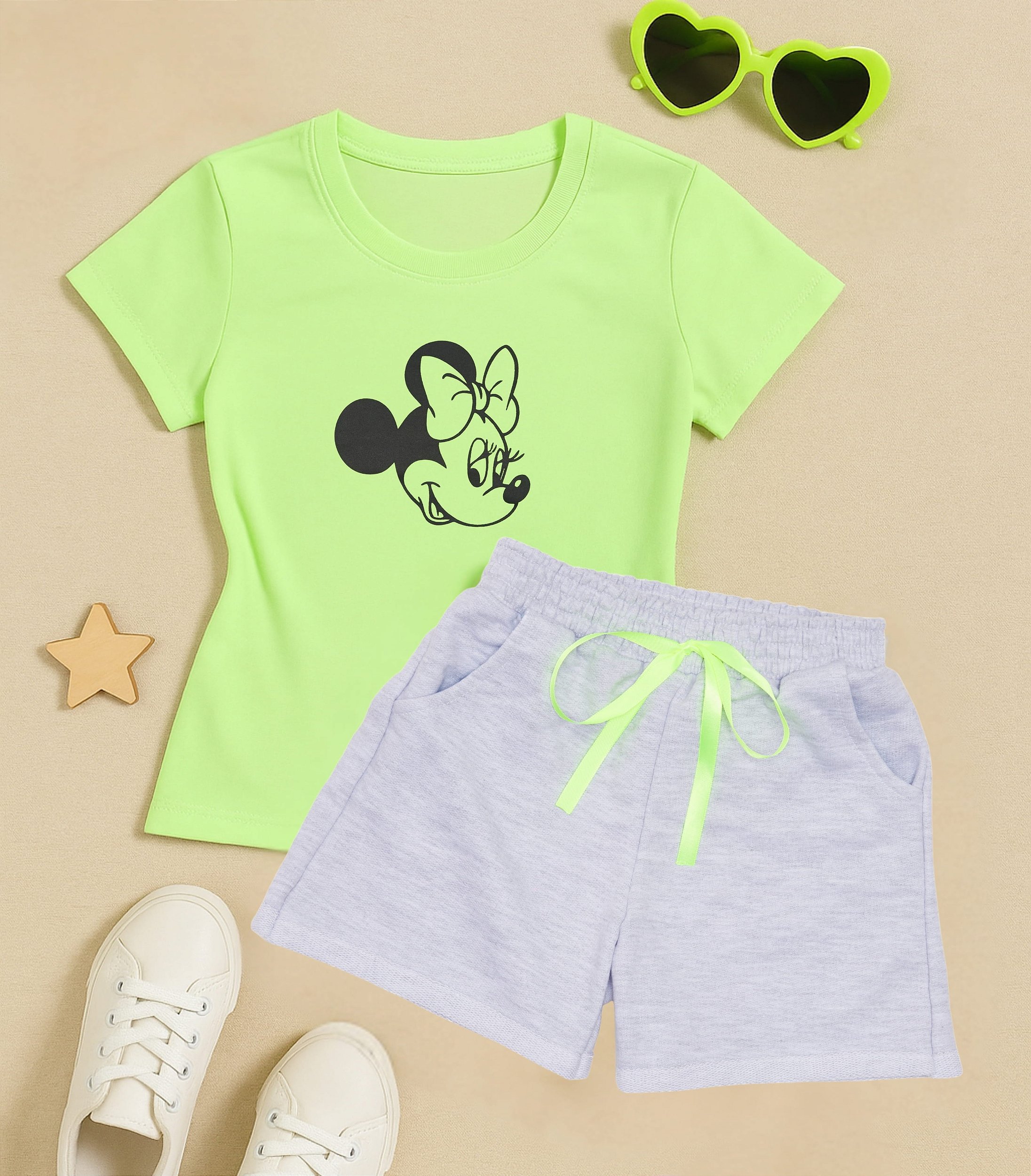 O conjunto Minnie é ideal para passeios, escola e momentos de lazer, com visual moderno e fácil de combinar.