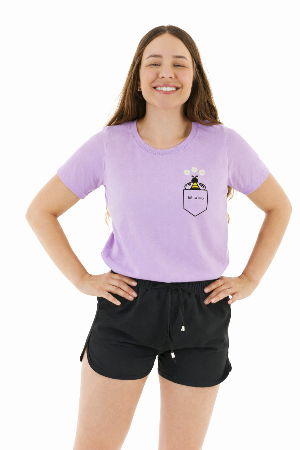 Conjunto Verão Feminino Camiseta Lilás Abelha Shorts Preto P ao GG