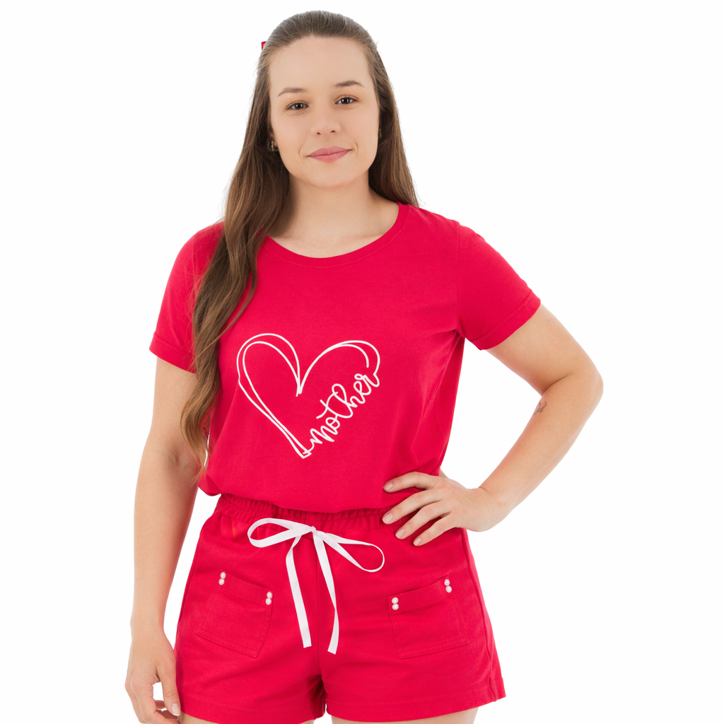 Conjunto Verão Feminino Camiseta Vermelha Mother Shorts Vermelho P ao GG