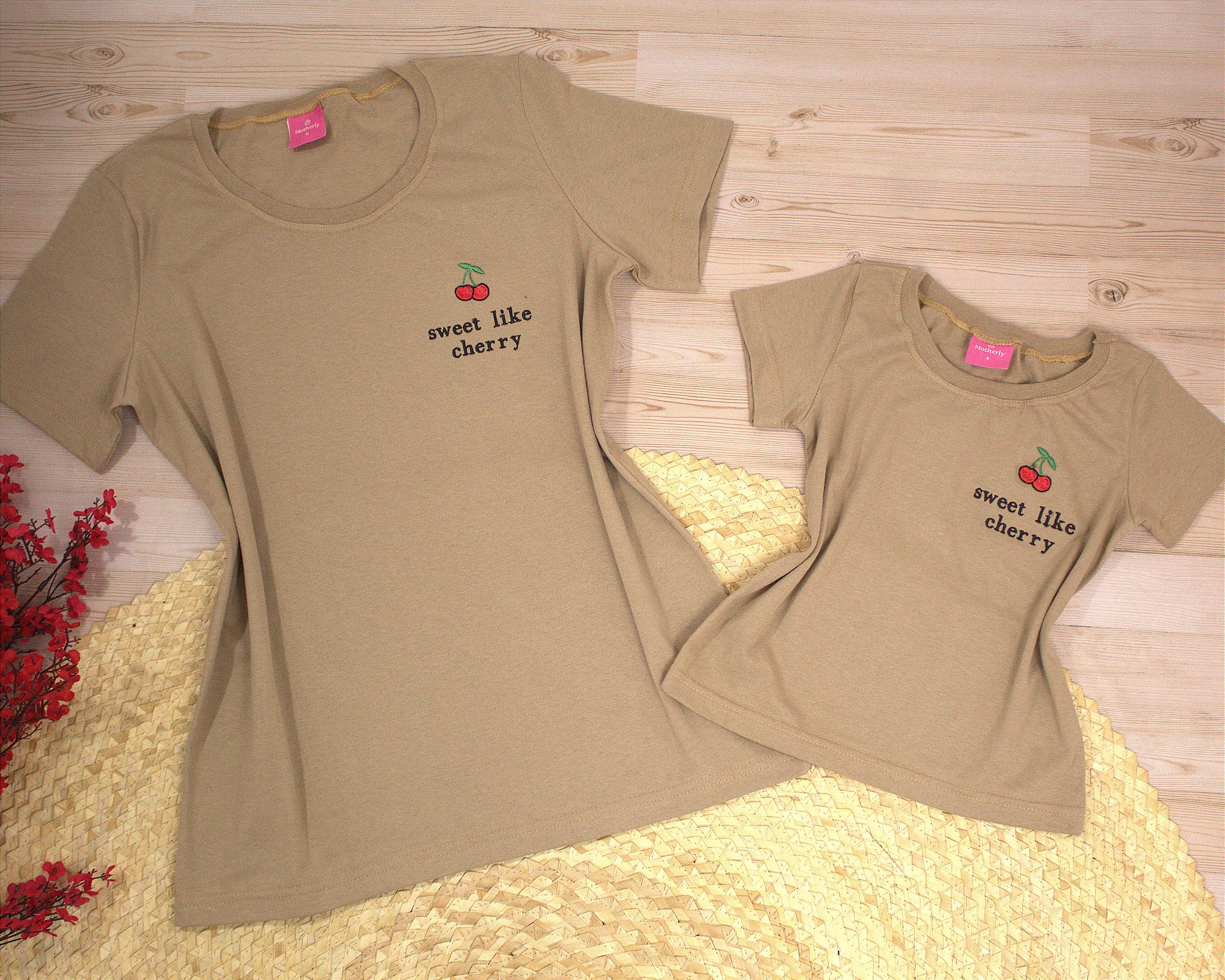 Transforme momentos em família em lembranças doces com esse kit exclusivo mãe e filha! A estampa “Sweet Like Cherry” é bordada com carinho sobre o tom bege suave das camisetas, trazendo leveza, ternura e um toque moderno ao look.