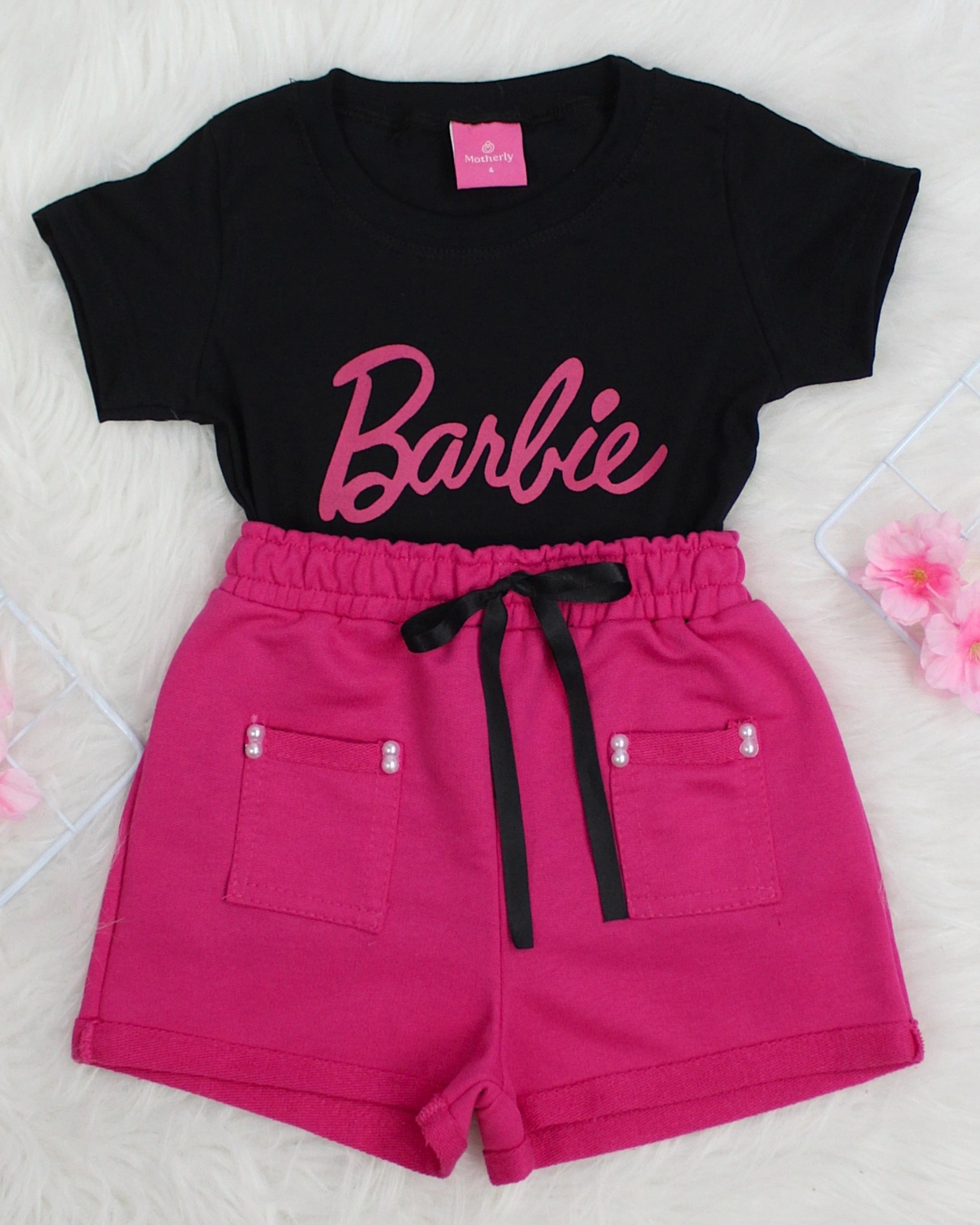 Conjunto Infantil Barbie Preto c/ Shorts Pink 2 ao 14