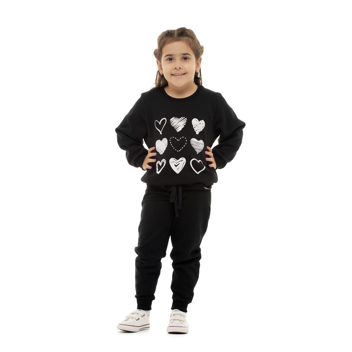 Conjunto Inverno moletom feminino infantil Preto Corações